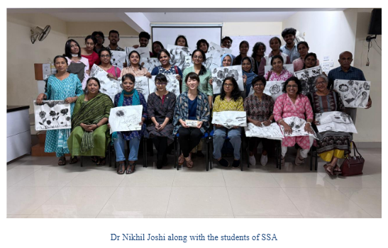 Students from Semester 1 and 2, accompanied by faculty member Ar. Ragashree Nair, participated in the Sumi-e Japanese Ink Painting Workshop held at the Nippon Kerala Centre, Kochi, on 17th December 2025. The workshop introduced participants to the traditional Japanese art of ink painting, emphasizing simplicity, balance, and expressive brush techniques. Through hands-on practice and guided instruction, the students explored the cultural and artistic philosophy behind Sumi-e, gaining exposure to an international art form. The experience enhanced their visual sensitivity, creativity, and appreciation for cross-cultural artistic practices, contributing meaningfully to their overall design education.