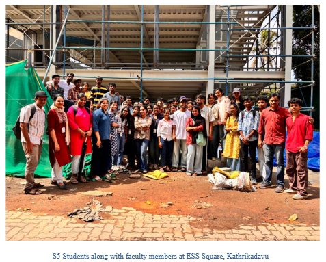 Following the site visit, students conducted a detailed case study of ESS Square, Kathrikadavu, a steel-structured building currently under construction. The exercise provided valuable insights into contemporary construction techniques, structural detailing, and material usage in steel buildings. The visit and case study enabled students to connect theoretical knowledge with on-site practices, fostering a deeper understanding of architectural design and construction processes.