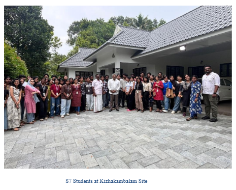 As part of the Semester 7 Working Drawing Studio, students visited Kizhakkambalam on 14th October 2025 to study GFRC (Glass Fiber Reinforced Concrete) panels and their application in construction.