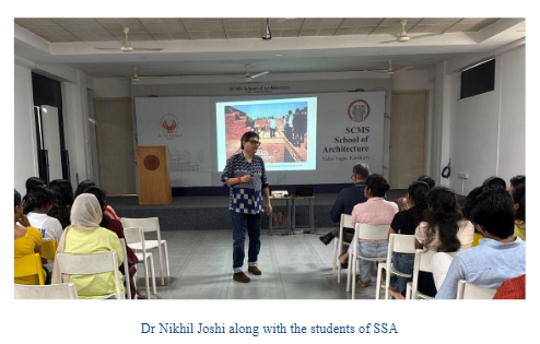 Dr. Nikhil Joshi from the National University of Singapore (NUS) visited SCMS School of Architecture (SSA) on 2nd December 2025 as part of the NUS MAArC outreach program. During the visit, he delivered an insightful presentation titled “Constructive Conservation”, highlighting contemporary approaches to heritage conservation that balance preservation with adaptive reuse and sustainable development.