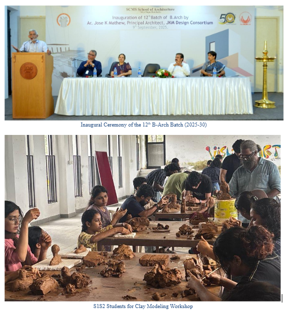 The Inauguration of the 12th B-Arch Batch (2025–30) was held on 9th September 2025 at the SCMS School of Architecture.